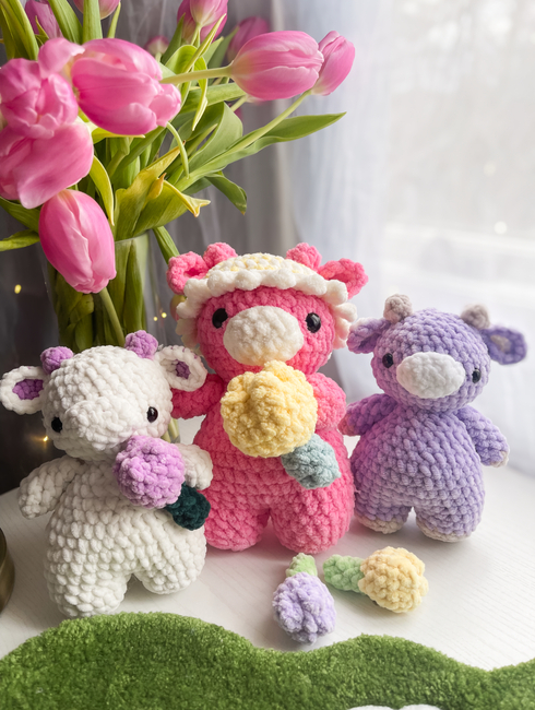 Cozy&Bare designed the Poppy the Cow pattern. Find more of their patterns on their Ribblr shop page.