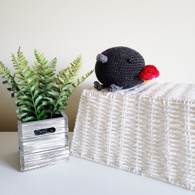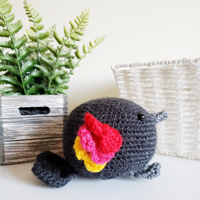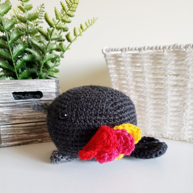 Crochet pattern to create Poppy the Red-winged Blackbird! This crochet pattern is perfect for anyone looking to create their own unique amigurumi plush bird. With detailed instructions, and step-by-step photos, you'll be able to create an adorable Poppy in no time. This pattern is intermediate and requires some crochet experience. This amigurumi crochet pattern allows you to make a fun, unique, and cuddly bird. Try your hand at crafting this beautiful one-of-a-kind bird today!