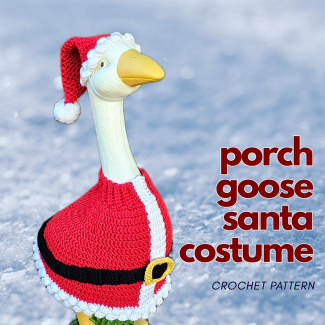 Eclectic Jess designed the Porch Goose Santa Costume pattern. Find more of their patterns on their Ribblr shop page.