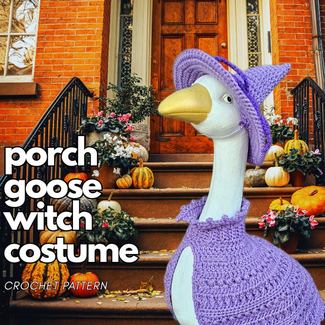 Is your porch goose feeling a little witchy? Crochet them a witch's hat and cape to dress them up in style this halloween!