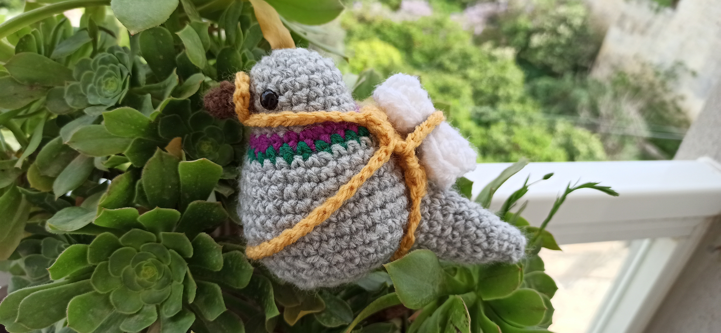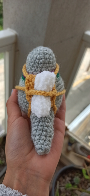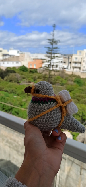 postman pigeon is an Intermediate Crochet pattern designed by yarn.is.getting.everywhere. for making an Amigurumi. meet the postman pegion! he'll deliver any messages! this pattern is for intermidiate because it includes sewing and colour c hange and some people might find the harness part a bit confusing, but the pattern includes step by step instructions an...