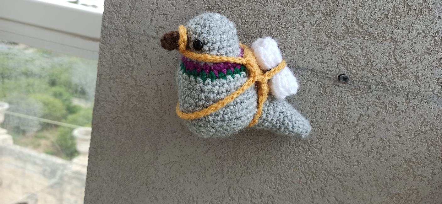 yarn.is.getting.everywhere. designed the postman pigeon pattern. Find more of their patterns on their Ribblr shop page.