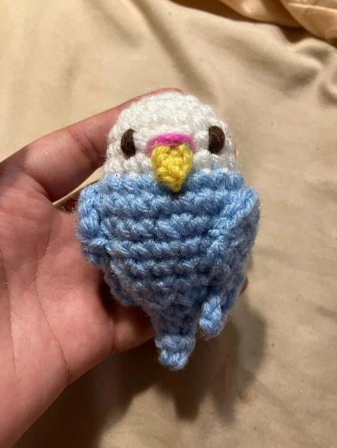 This is precious the parakeet. She's inspired by my love for parakeets, as I had a few when I was in about middle school. Now I'm 17, and while I'm all for my dogs, I'd love to have a little bird that sits on my shoulder again. Video tutorial included! And a free video will be on YouTube @thecrochetjunkie!