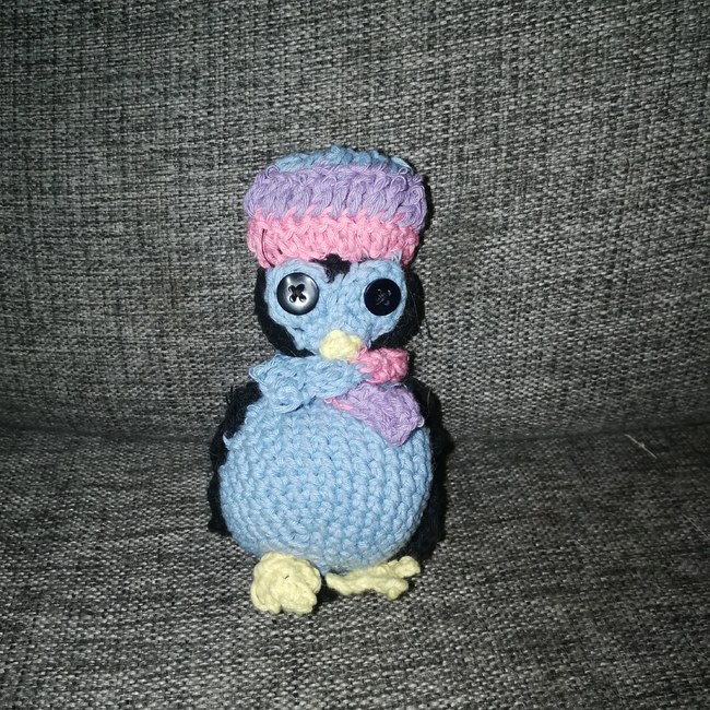 Penguin with hat n scarf in pride colors. I choose to do colors from the biesexual flag, but feel free to choose from other flag or colors u like.