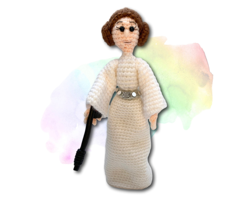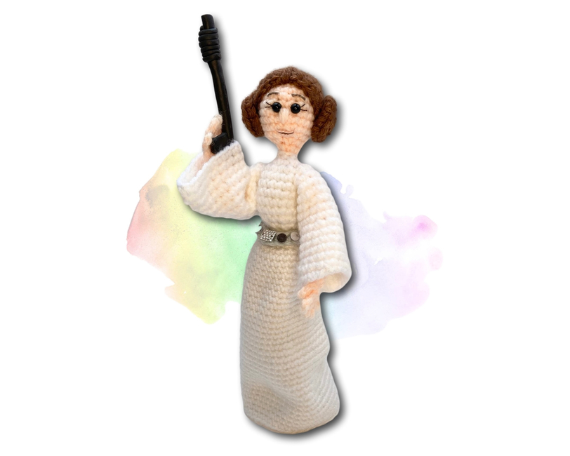 This is a princess who can manage her own rescue! Worked in worsted weight yarns with wired limbs, she is fully posable and ready for action. This pattern is suitable for crocheters with some experience, and includes more than 25 colour photos to help you along the way. May your crochet journey be bold and adventurous!