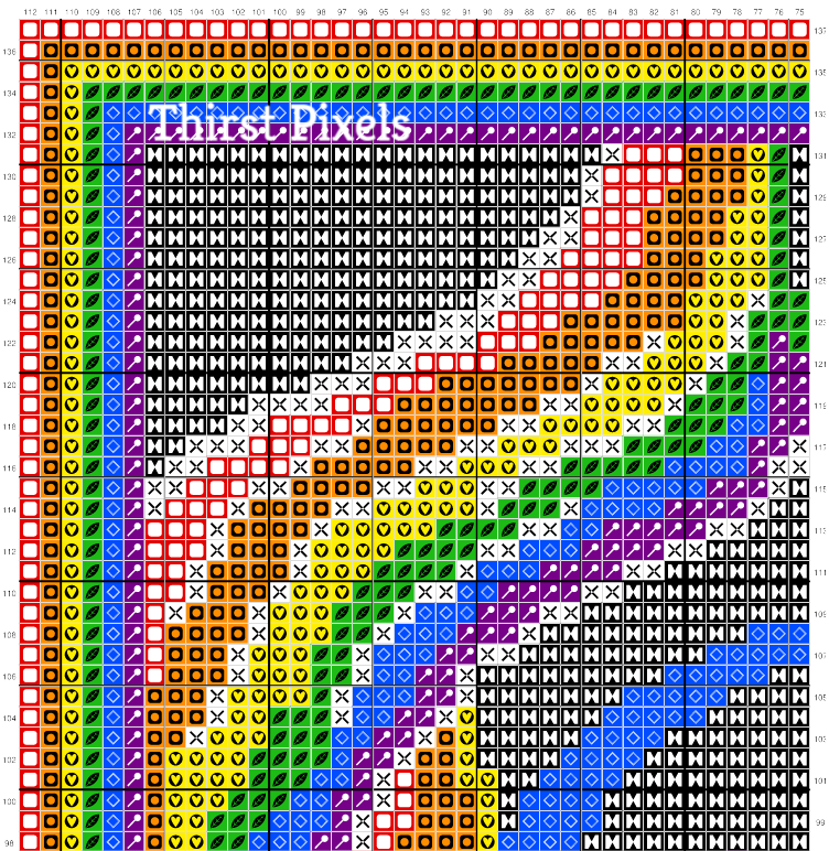 Also, please note that the example photos may be of projects made from other Thirst Pixels charts. Due to the volume of designs, I haven't managed to physically work all of them up yet, but I'd love to see YOUR finished object photos!