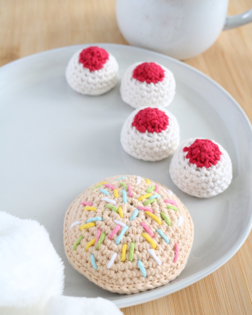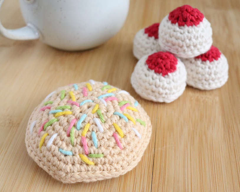 Hello and welcome to the crochet pattern for my Puerto Rican Mantecaditos and Polvorones! Polvorones and mantecaditos were some of my favorite cookies growing up. There was a bakery close to my school that made the best polvorones. They were huge and completely covered in colorful sprinkles. Whenever my parents stopped at that bakery, those polvorones were always my go to choice, their flavor always bringing the relief of the ending school day. Mantecaditos were more of a holiday cookie, usually making an appearance only on Christmas or Three Kings Day. Both of these cookies were delicious and are each associated with a different memory. A delicious treat after a hard day of school, or a flavor associated with the joys of Christmas as a child. They both hold a special place in my heart and I'm happy I get to share these special cookies with you. Thank you for your support and I hope you enjoy making your own mantecaditos and polvorones.