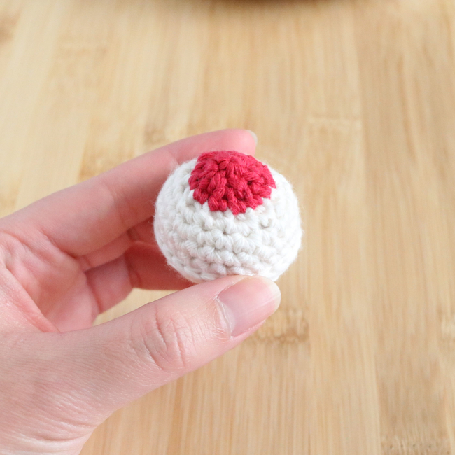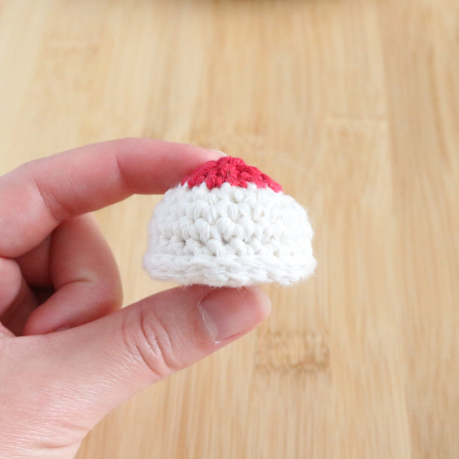 R6: (sc, sc-inc)x3, 3sc, (sc, sc-dec)x2, 2sc, sc-inc, (hdc-inc)x2, (sc-inc)x2, 2ss, ch1 [30]