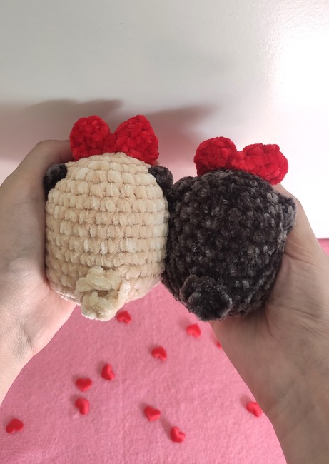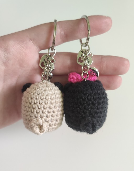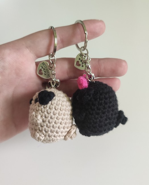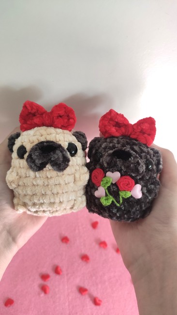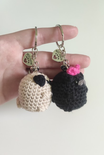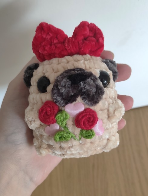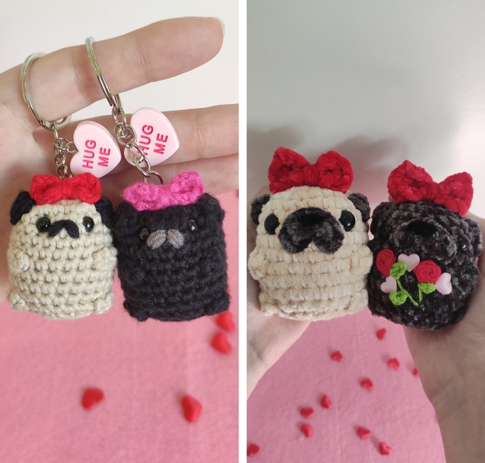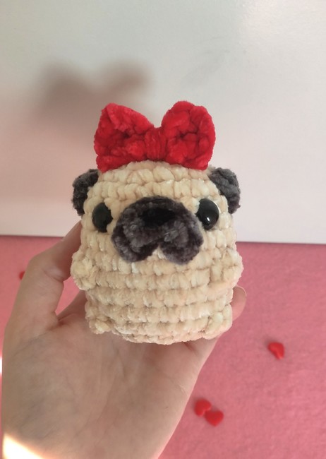Pug with bow plushie/keychain crochet pattern! Step-by-step easy pattern with multiple step photos.