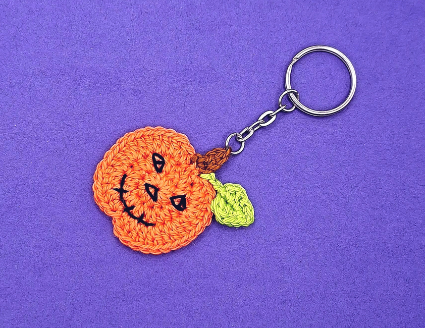 Instructions can also be used to make a pumpkin or jack-o'-lantern keychain charm, or an applique to decorate any of your fall or halloween projects.
