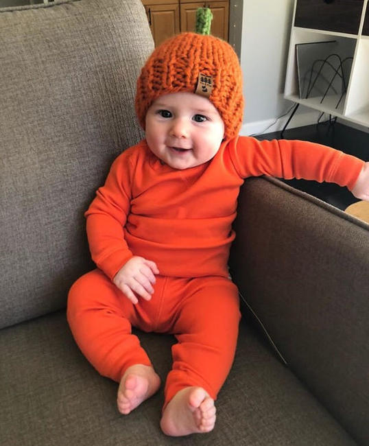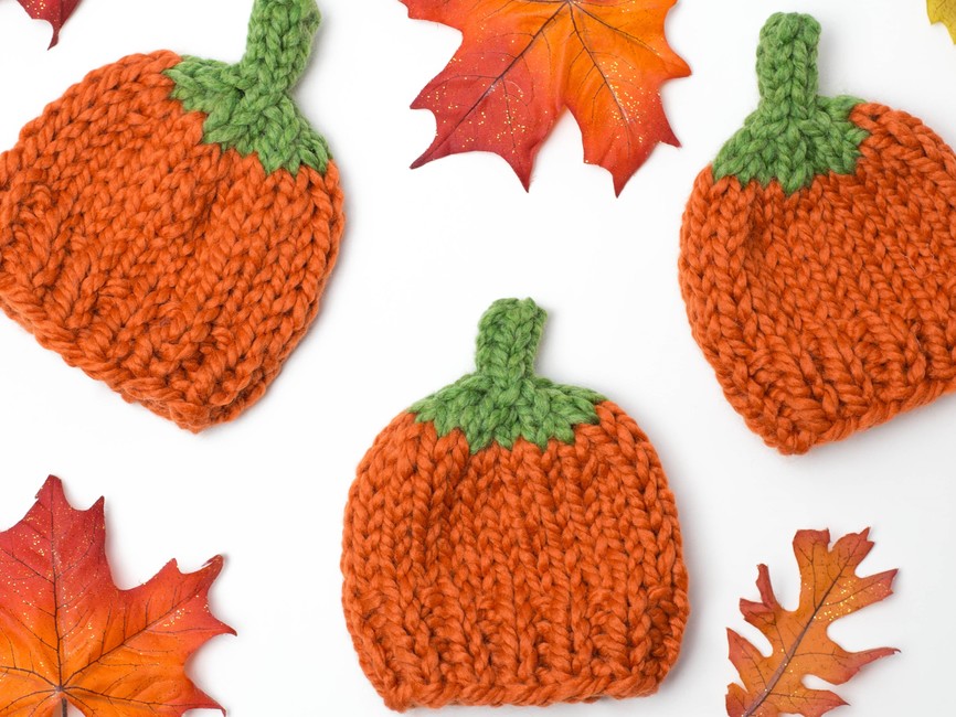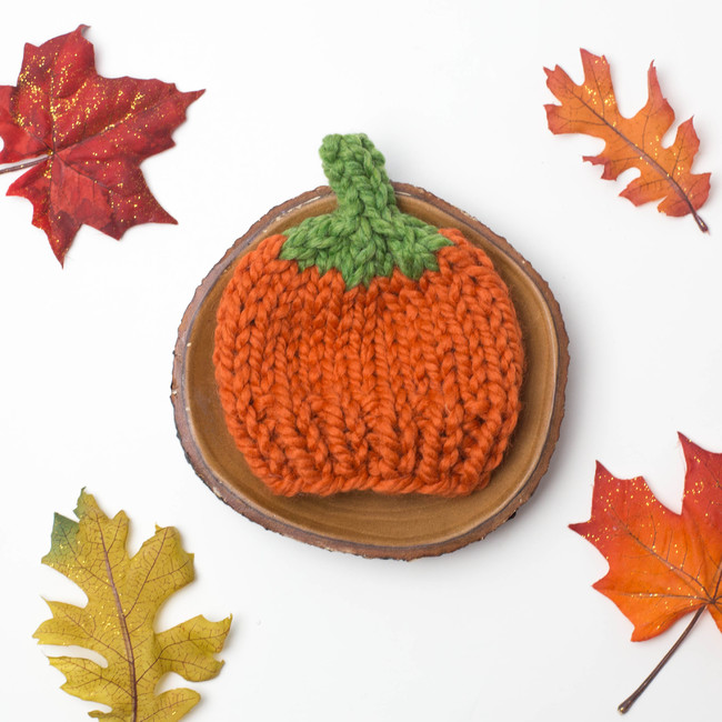 Our pumpkin hat knitting pattern makes the perfect pregnancy announcement, baby shower gift, newborn photography prop or winter hat for your little one.
