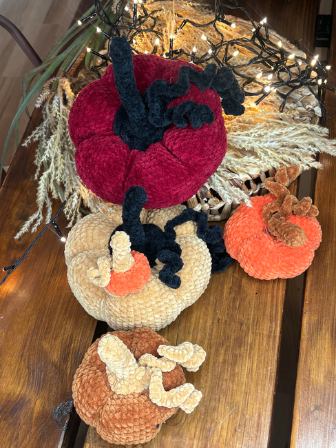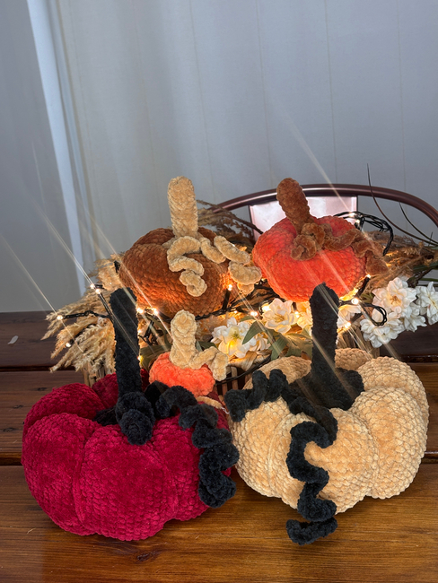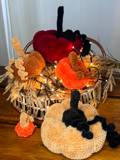 Bring the autumn vibe into your home with this adorable set of 5 plush crochet pumpkins, each in a different size! From a tiny tabletop cutie to a big, squishy centerpiece, this bundle has everything you need to create your very own handmade pumpkin patch.