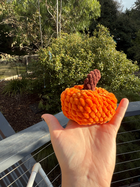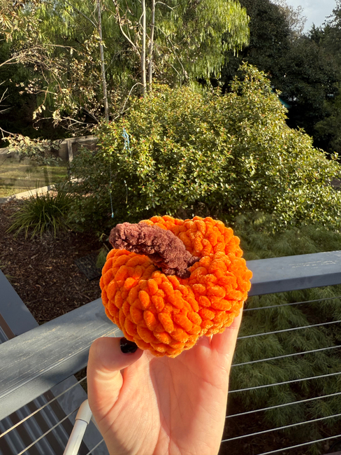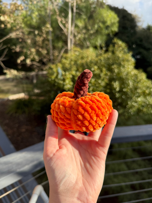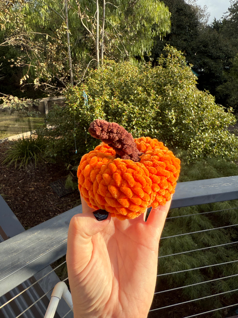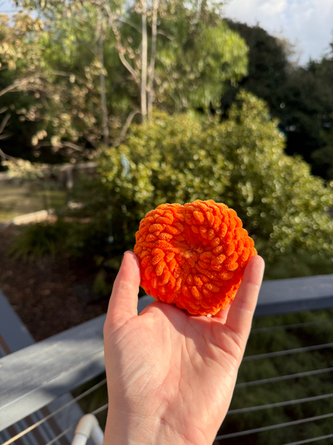 This is my autumn pumpkin pattern! Made to fit in your hand and if you use smaller yarn it boils be used as a bag charm or keychain