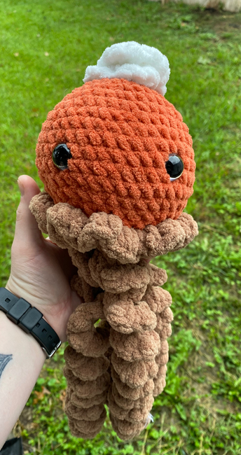 The Pumpkin Pie Jellyfish pattern makes a Amigurumi. It is a Beginner Crochet pattern.