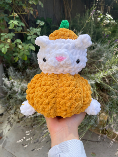 This little halloween special is called Bean! He is a pumpkin pug and takes roughly an hour or two to make! He might require a bit of sewing, but who can reject this little cutie?