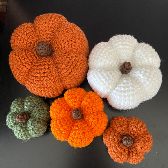 I wrote this pattern out back in October of 2022 and just got around to finishing it! Hoping you enjoy making all of these different pumpkins :)