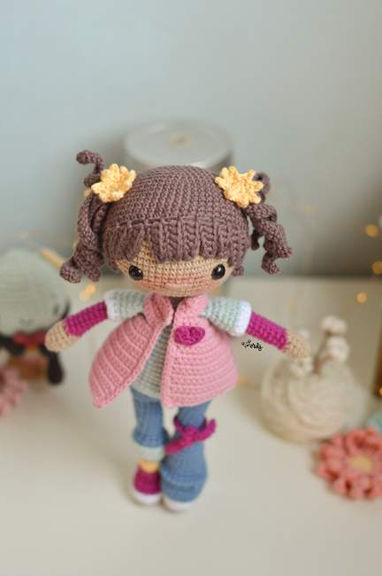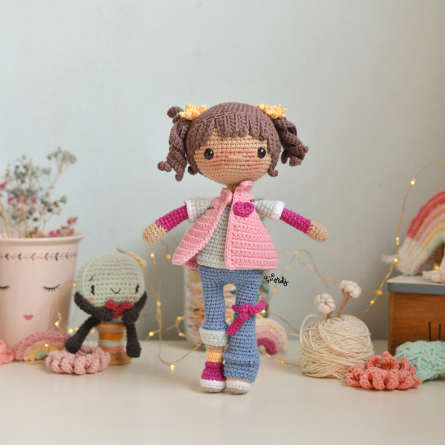 Pattern or crocheting guide to make an amigurumi doll called Punky.