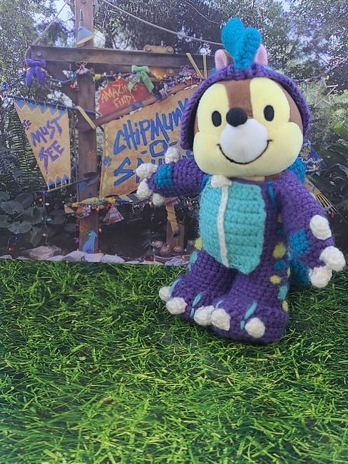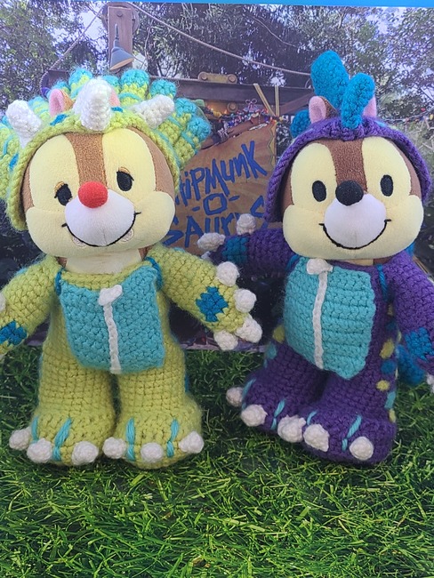 The Purple Outfit, worn by Chip, is a Stegosaurus. The Green Outfit, worn by Dale, is a Triceratops. However, if you want to have other characters dress up as Dinos, feel free! I'd love to see all your friends in their new outfits!