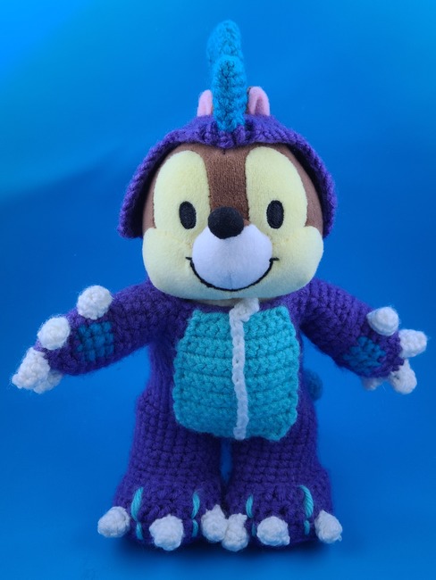 Small piece of Velcro (Optional) to attach the back together. This is not fully necessary as the suit is fairly stiff. I used self-adhesive no sew from Velcro brand Chip and Dale Nuimo dolls from Disney (or other similar nuimo dolls) to wear the outfit! Also good to have when making the outfit to make sure it fits and you aren‘t crocheting too tight!