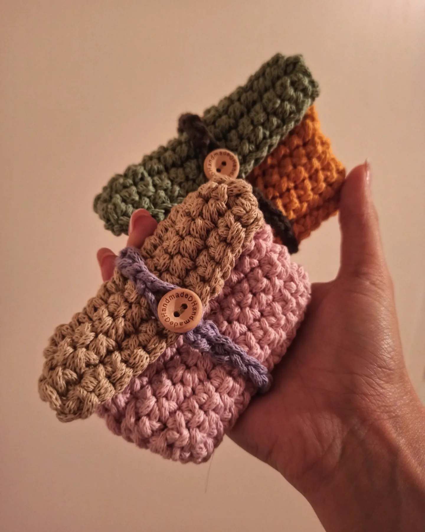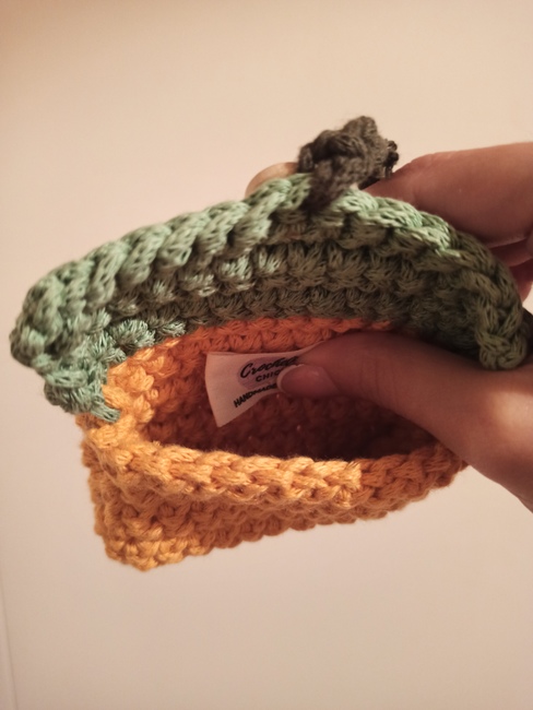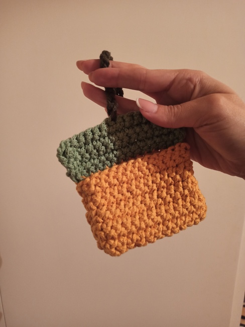 This guide will consider the green and orange purse, since the steps are the same also for the Pink and beige one.