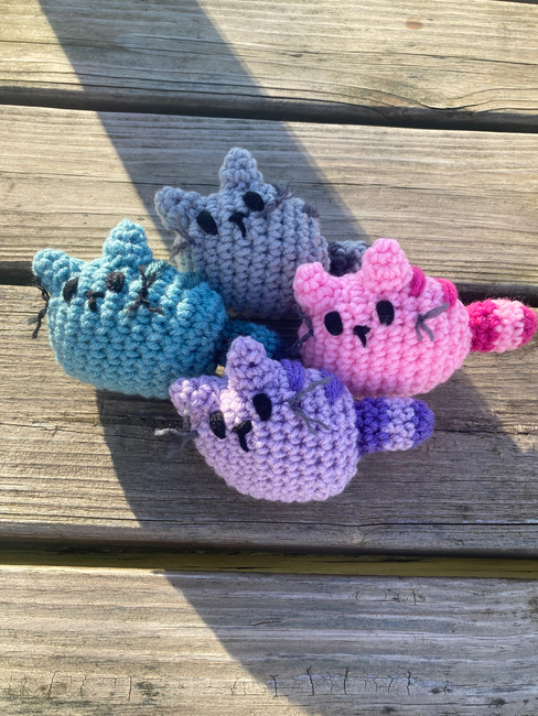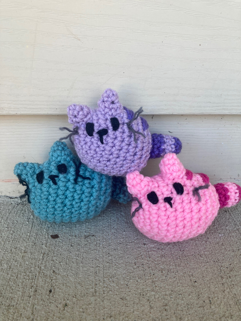 Hey! This is a cute little Pusheen crochet pattern! It's quick to work up and is fairly simple! I did not use safety eyes when making this, so I do not have tips on where to add them. I hope you enjoy this little baby