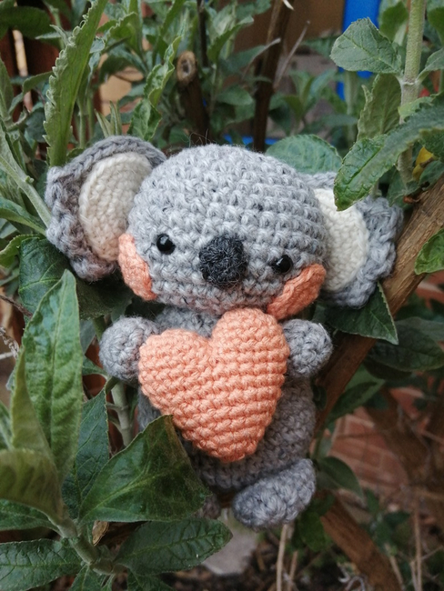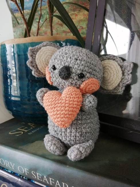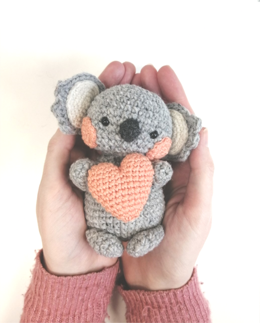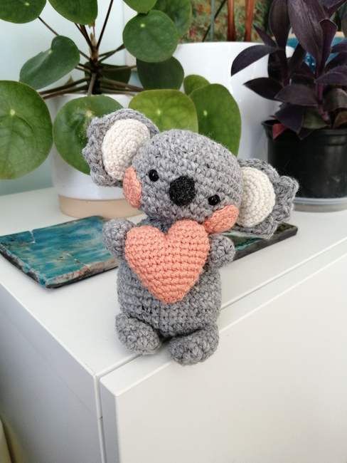 Make this cute koala and the heart it's holding by following this text-based pattern. This is a Ribblr e-pattern. If you prefer a PDF, it's available on my Ko-Fi shop.