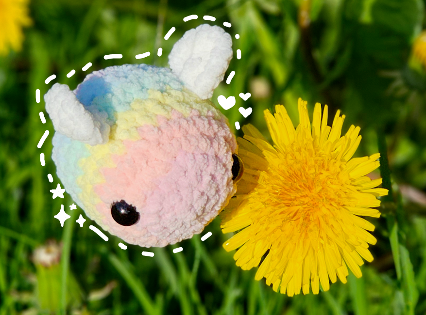 Hi! I hope you enjoy making this rainbow bee! This pattern is pretty low sew, because you have to sew on the wings. Please do not copy or claim as your own.