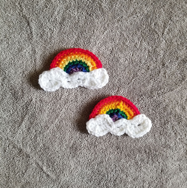 This rainbow applique is great for scrapbooking, embellishing clothing or bags or whatever your crafty hands want to do with them. They are a great project for using up scrap yarn.