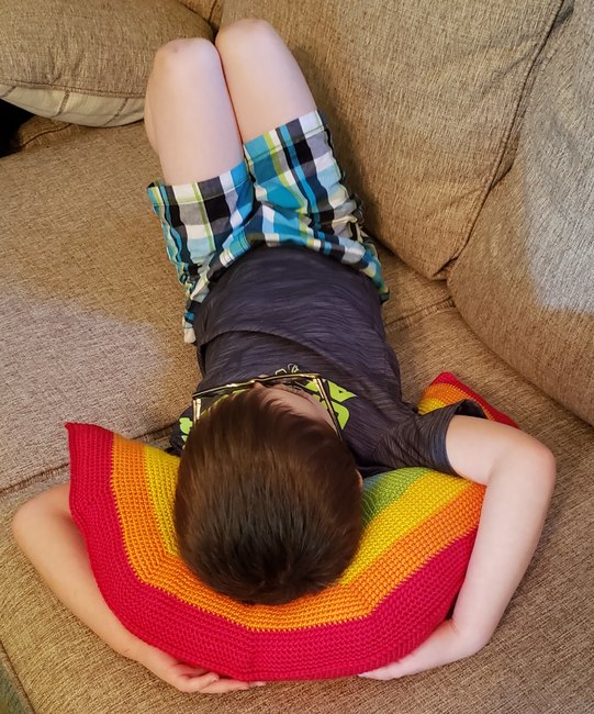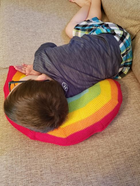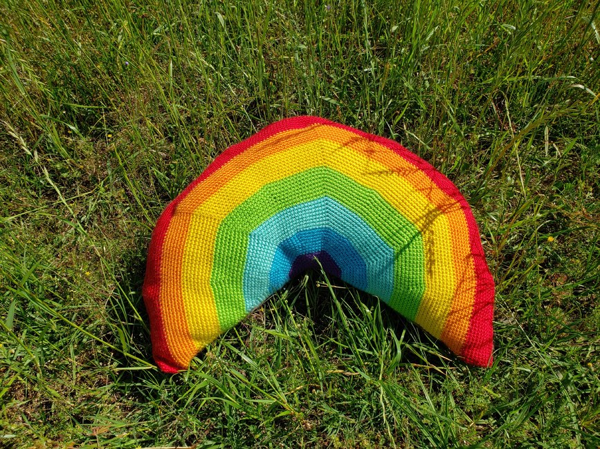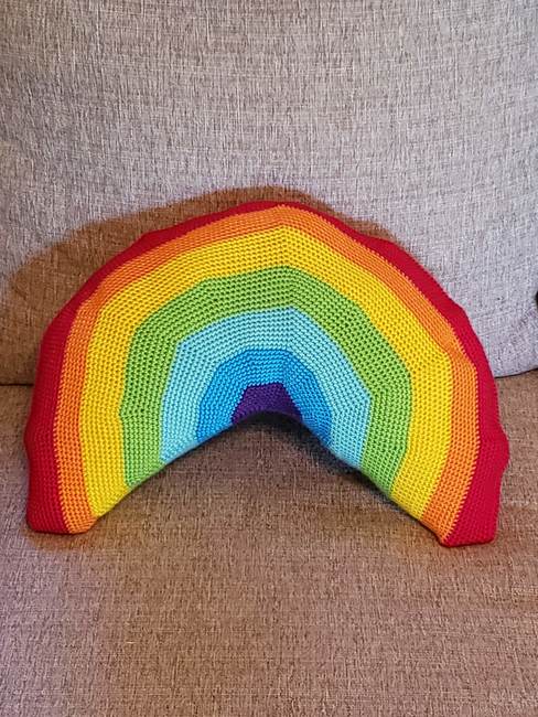 Spread love and cuddles with a happy little rainbow! Measuring approx 14" tall by 16" wide, it’s hard not to be happy when you see cuddle up with this bright happy pillow.