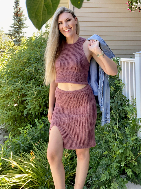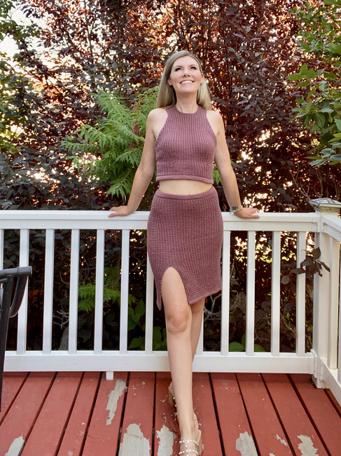 The Red Rocks Racerback is designed to pair with the Red Rocks Skirt, but it is equally adorable on its own! There are 2 lengths suggested for this top, crop top and full length. There are 2 bust options as well. The bust and sides feature a decorative increasing that flatters curves and enhances shaping (even for small-chested people like myself). The racerback is trendy and fun, and this design can be dressed up or down for all events.