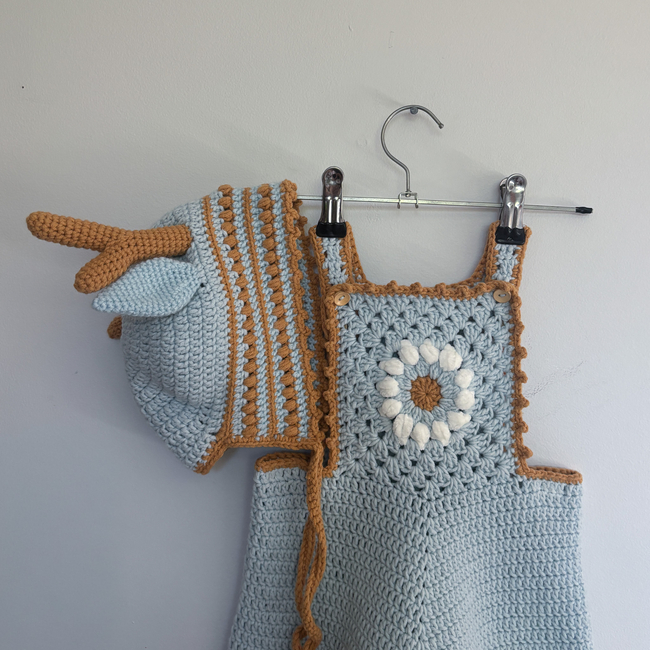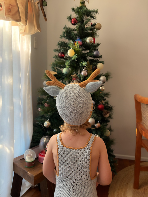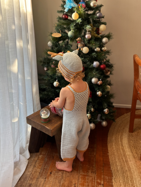 Please note: The overalls were designed as a bunny costume but can simply be made without the tail so it matches the reindeer bonnet.