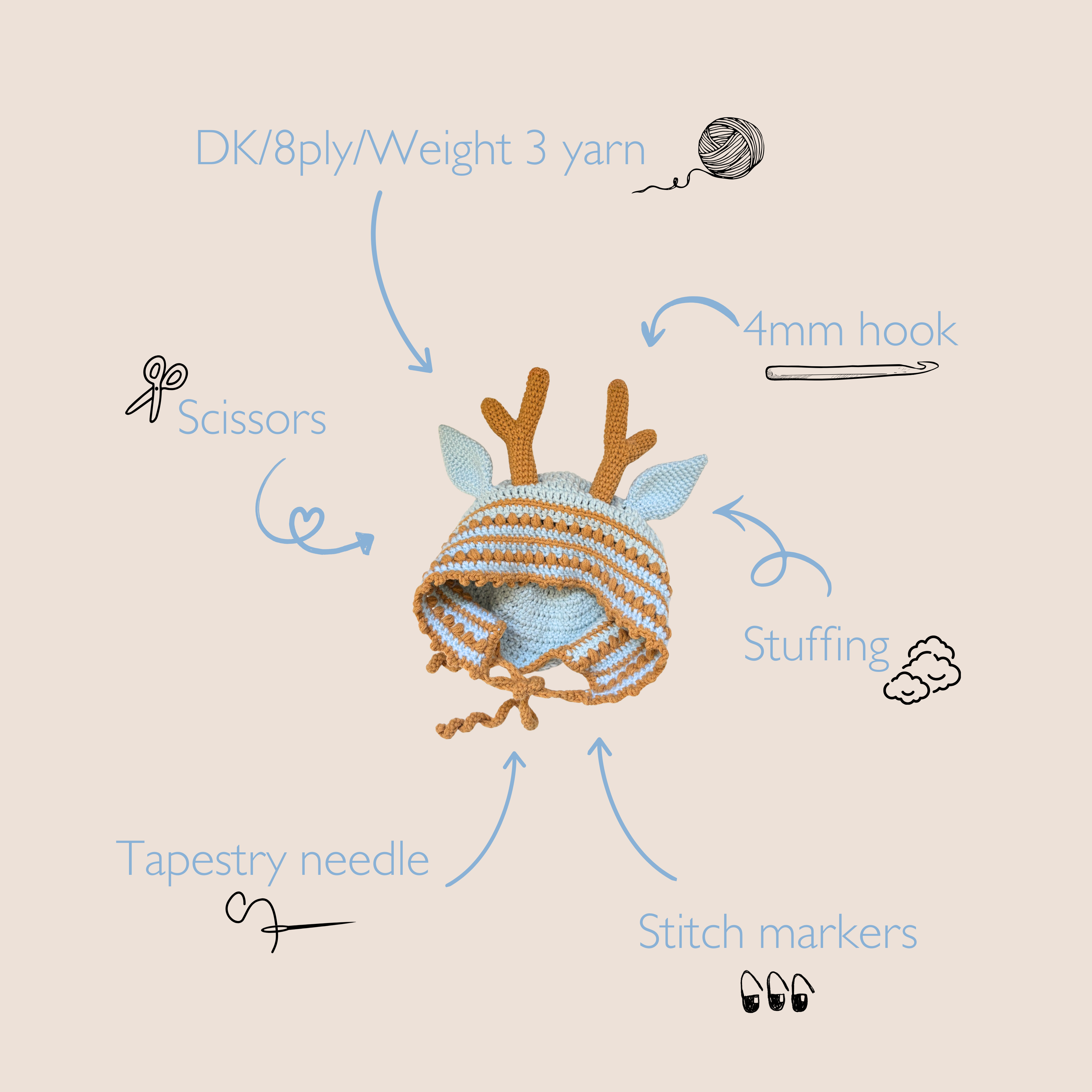 Reindeer Bonnet and Overalls is an Intermediate Crochet pattern designed by FORME. the label for making a Clothing. A simple, seasonal set designed for the festive period.The Reindeer Set includes a pair of overalls and a matching bonnet, creating a coordinated look with a soft, handmade feel. Designed with comfort in mind, the overalls have a relaxed fit, whil...