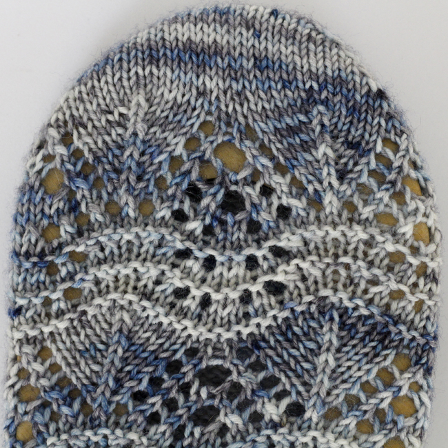 The pattern is written for the magic loop method for knitting socks; however, the design could be worked on double-pointed needles or mini-circulars instead should you prefer.