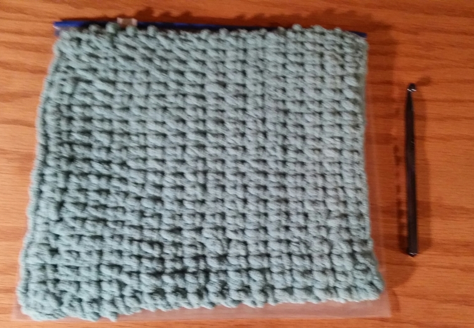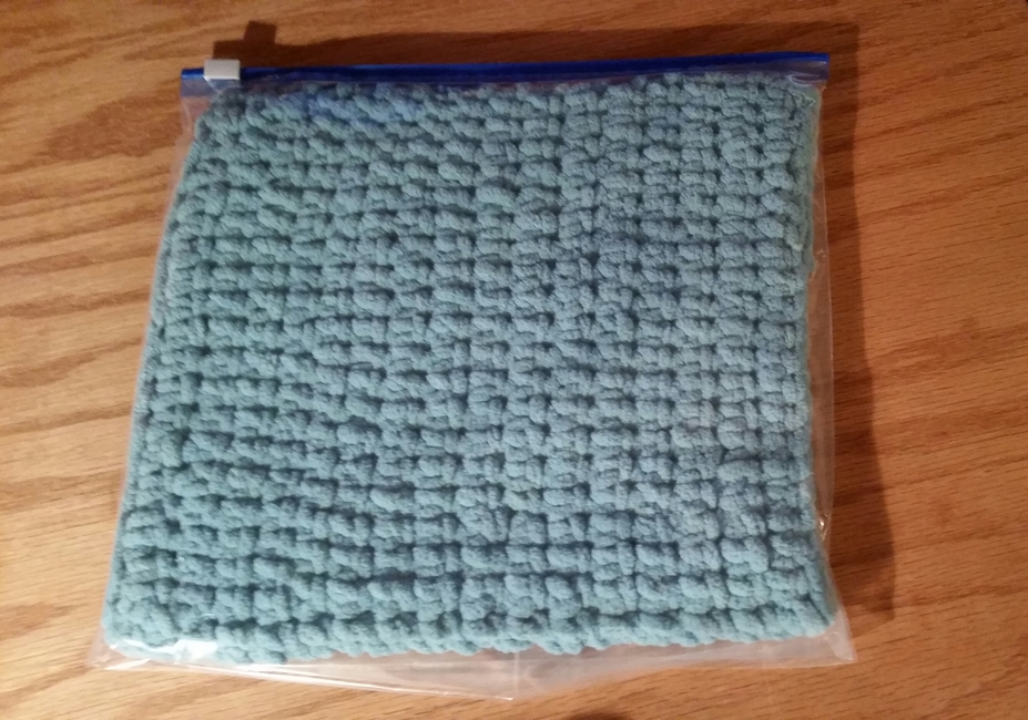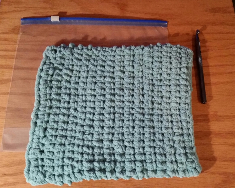 It can be done in your choice of stitches, however, what a great way to learn the sc thermal stitch. You want the thickness of a sponge, so another stitch would require you to make 2 and stitch them together. Or not, put them together in the baggie.