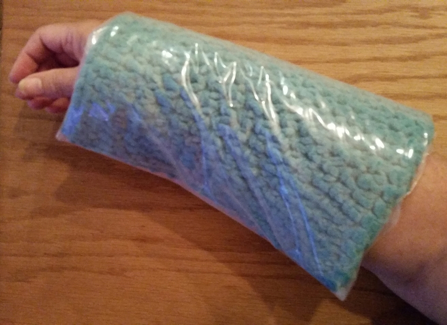 I don't have ice packs, but I have Bernat Blanket Yarn. I use it for this ice pack because I know how much water it holds. I've made many reusable water balloons with it in the past.