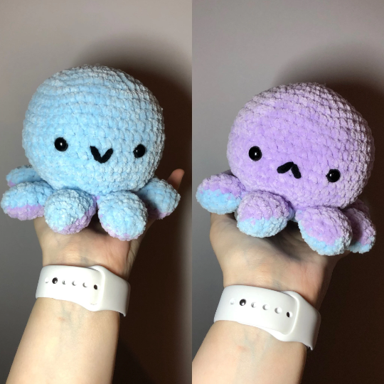 Use this pattern to make an adorable reversible octopus plushie perfect for showing your mood! I absolutely love making these, as well as making them to sell i gift these plushies for every occasion.