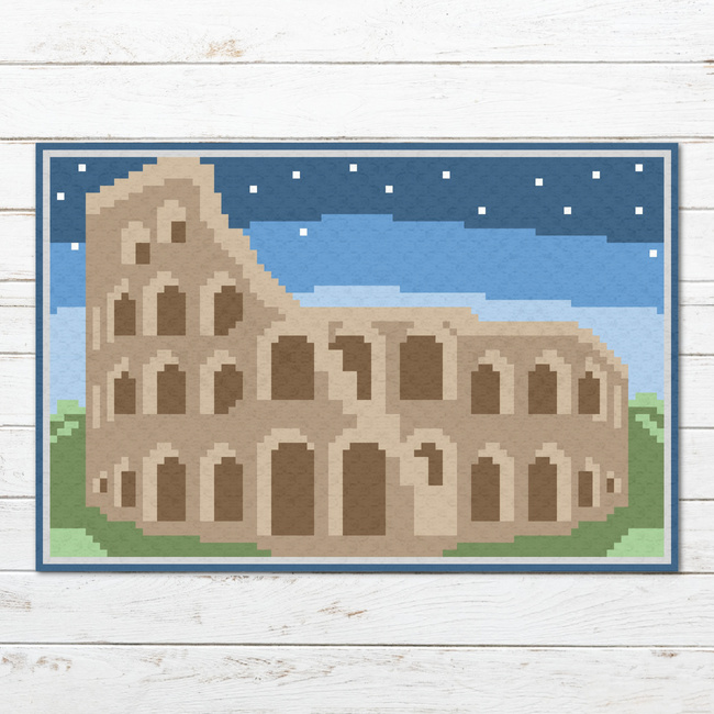 Grab your crochet hooks and step back into history to visit the old Roman amphitheater with this Colosseum Under the Stars C2C Crochet Pattern. This graphgan features the grand Colosseo of Roma Italia set against a velvety night sky scattered with stars. This blanket is sure to satisfy your wanderlust or gift a finished blanket to the travel lover in your life.