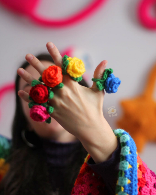 This adorable rose ring pattern is perfect for begginners and includes a bunch of pictures to help you complete your ring! It's a super quick project that is easy to customize to any finger size. It is also a really fun and quiet fidget toy for kids.