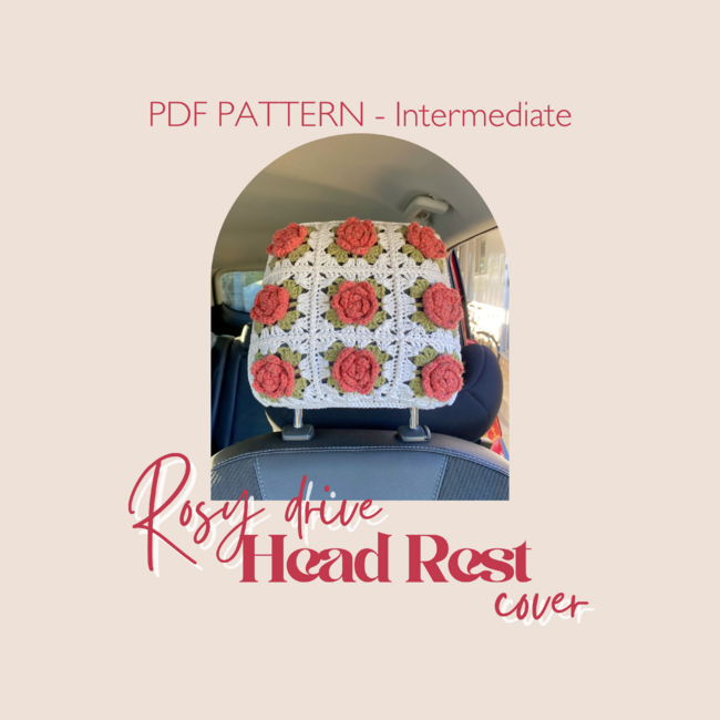 Rosy Drive Head Rest Cover is a Beginner Crochet pattern designed by FORME. the label for making an Accessories. This head rest cover is super cute and easy to make! This pattern is made up of 9 patches which are then attached together. We will then use a granny square pattern for the back. If you would like to create a whole car set, I also have a seat belt...