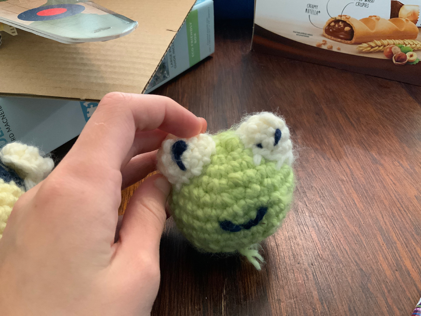 A cute little frog easy to make and cute to collect. Please don't claim this pattern as your own but you can sell the makes from the pattern.