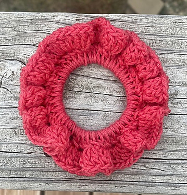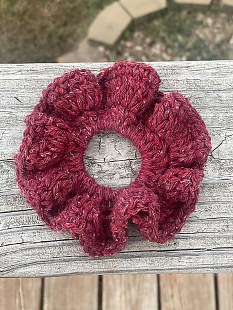 The Ruffled Feathers Scrunchie pattern is free on Ribblr.