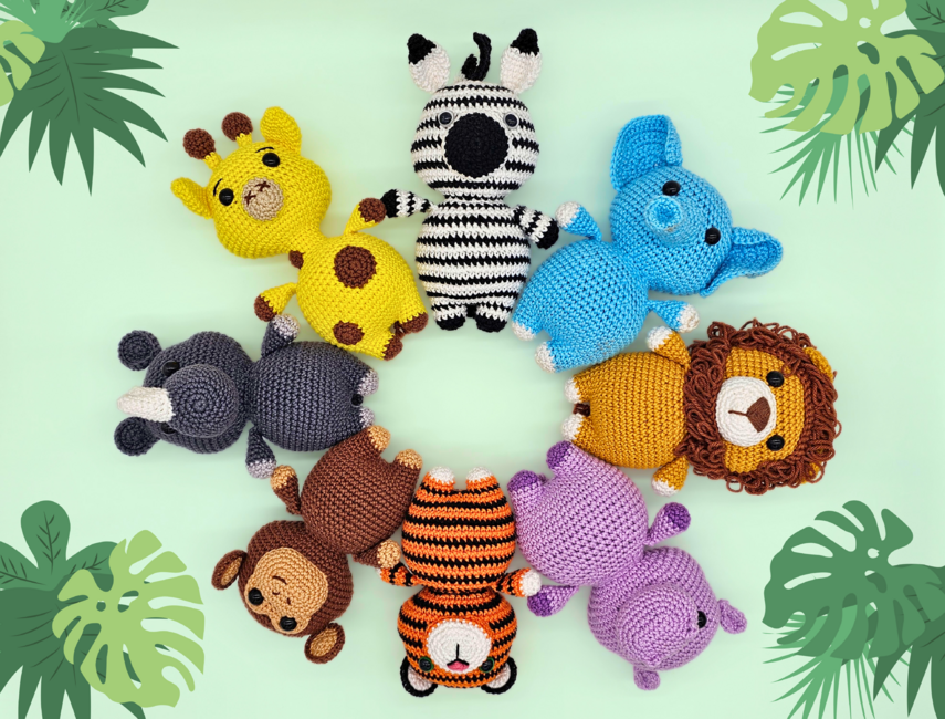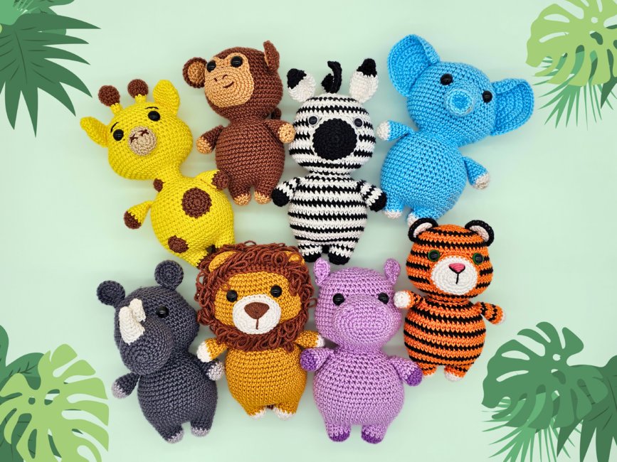 Introducing my Chunky Safari Bundle - interactive crochet patterns for eight low-sew amigurumi Jungle animals.