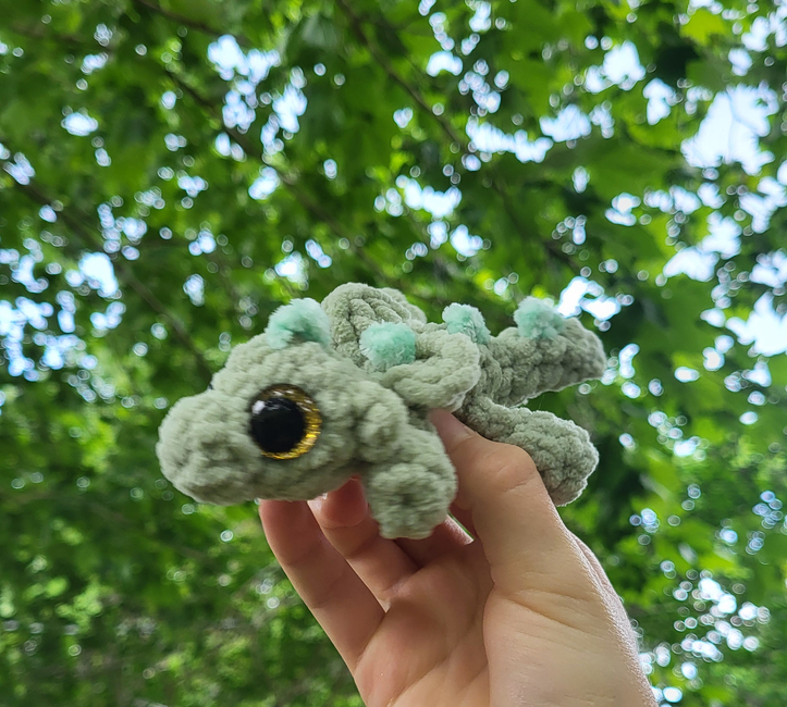 For the Love of Yarn designed the Sage the mini Forest Dragon (PDF included) pattern. Find more of their patterns on their Ribblr shop page.