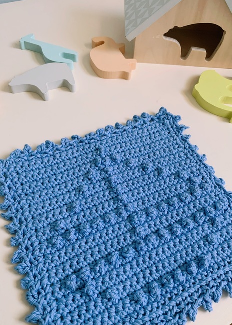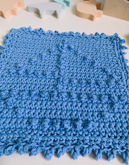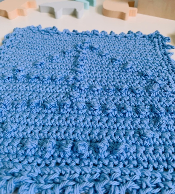A fresh and fun washcloth that was designed with babies in mind that would be great to be given as a gift for a new baby, baby shower, or birthday present! So quick and easy to make you could even make several and keep for yourself!