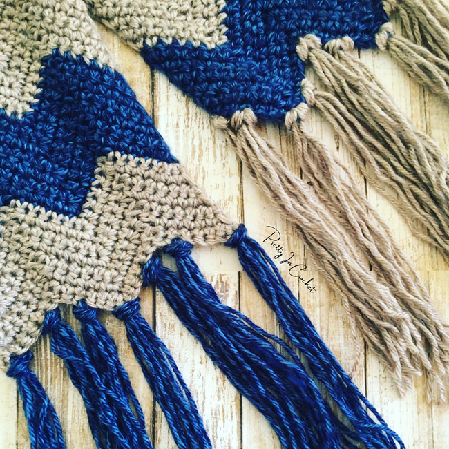 The ripple or chevron effect adds a touch of sophistication to this accessory, which will be perfect to wrap around your neck on a chilly fall day. The pattern is for an advanced beginner or early intermediate crocheter, but naturally anyone can try their hand at this. It’s easy enough that it could be the project for the beginner crocheter to try as a first beginner advanced project. It requires only single crochets and the ability to count and skip stitches here and there as well as colour changing so it ought be simple enough to master.