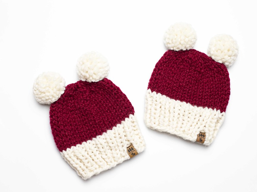 Our chunky double pompom Santa winter pompom hat knitting pattern is perfect for making handmade gifts for your loved ones, young and old.