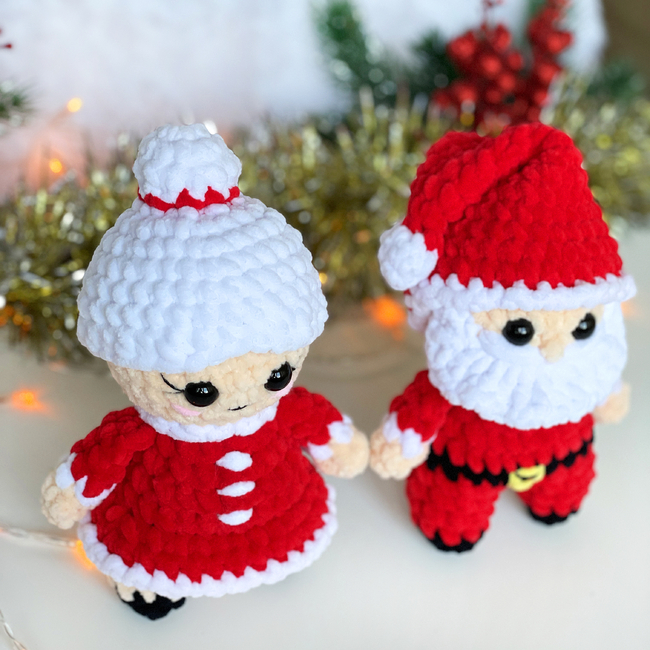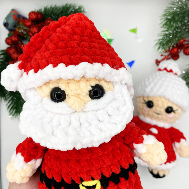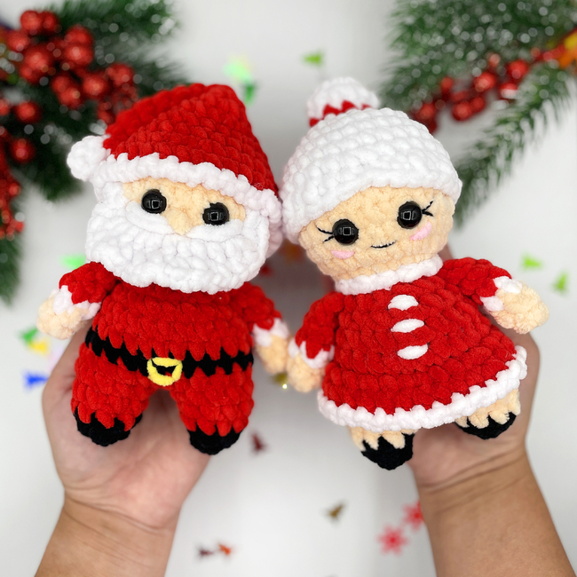 Get into the holiday spirit with this cozy 2-in-1 Santa & Mrs. Claus Crochet Pattern Set!