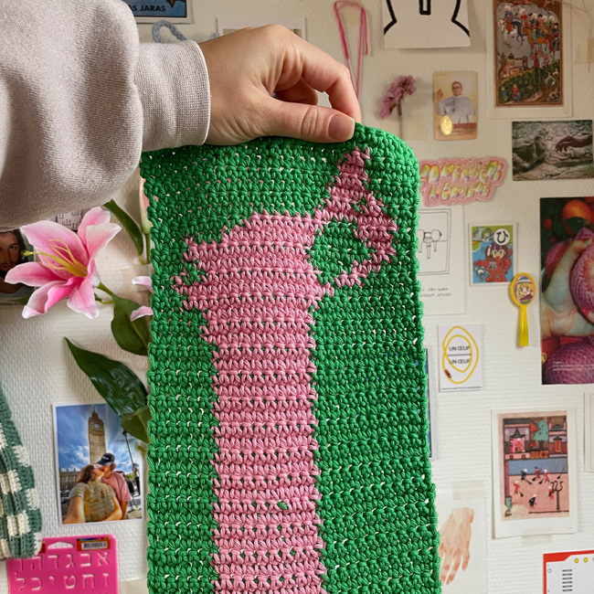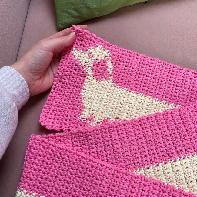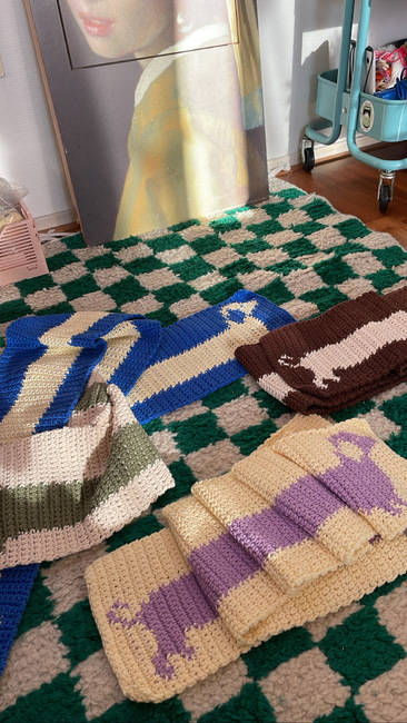 This pattern includes an explanation on how to crochet the sausage dog scarf and a graph. The pattern is fit for beginners. It's pretty simple - the only crochet techniques used are single stitch and tapestry crochet.