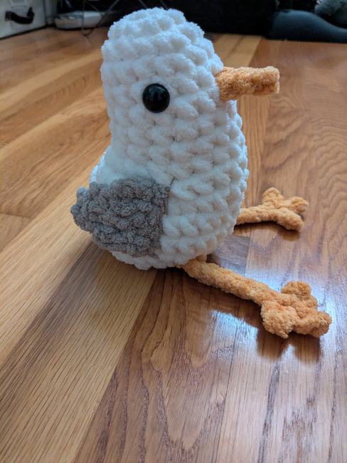 creme bernat blanket for the body gold or light orange for the beak Gray for the wings