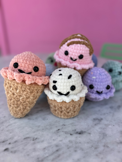 Treat your little one to endless fun with our Crochet Ice Cream Mix & Match Toy! This adorable set features a classic cake cone and a textured waffle cone, with soft, squishy scoops in vibrant colors perfect for tiny hands. Ideal for pretend play, it encourages creativity, fine motor skills, and hand-eye coordination. Whether stacking scoops or sharing "treats," kids will enjoy hours of interactive play. Perfect for playdates, quiet time, or as a unique gift, this toy adds a scoop of joy to any collection!